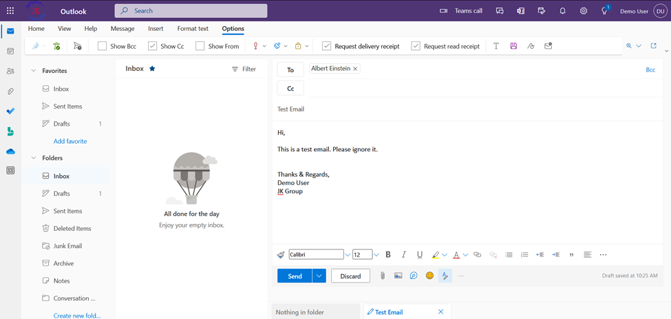 Note: If you have Selected Request a delivery report and read report, the Delivered and Read report will be received after successful delivery and read of the sent email at the recipient end respectively.