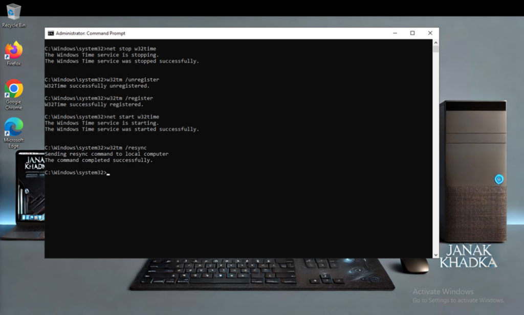 • If the time sync issue persists, reset the time service by running following commands one by one and check the status:
